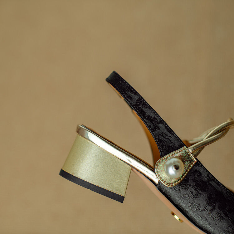 A perfectly squared-off toe with a signature premium sculpt these vintage-inspired mules, elevated by a pearl-accented strap and a wrapped block heel.